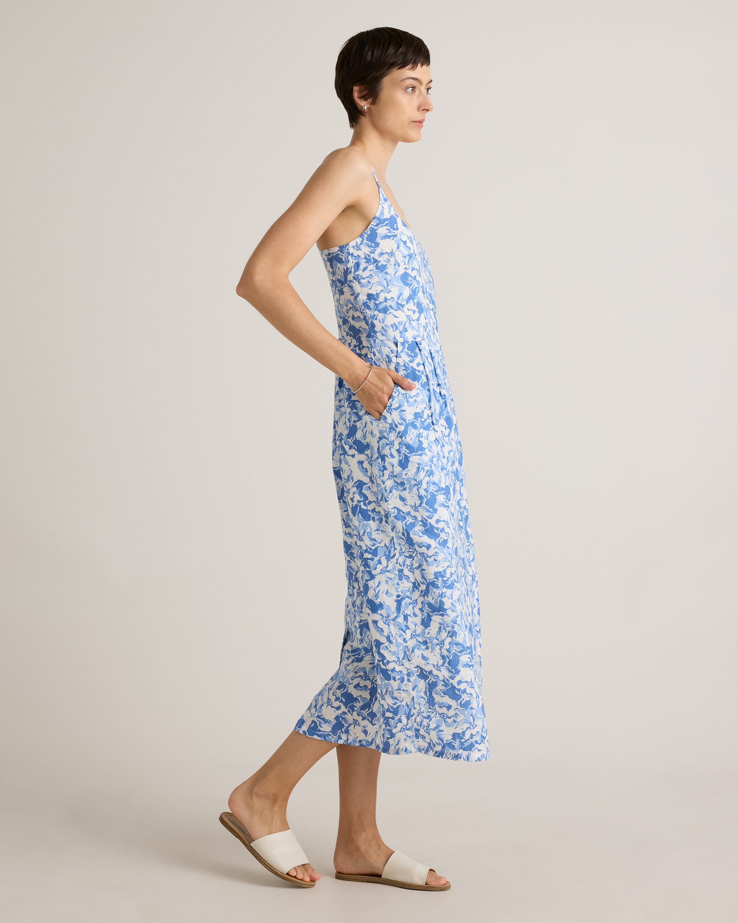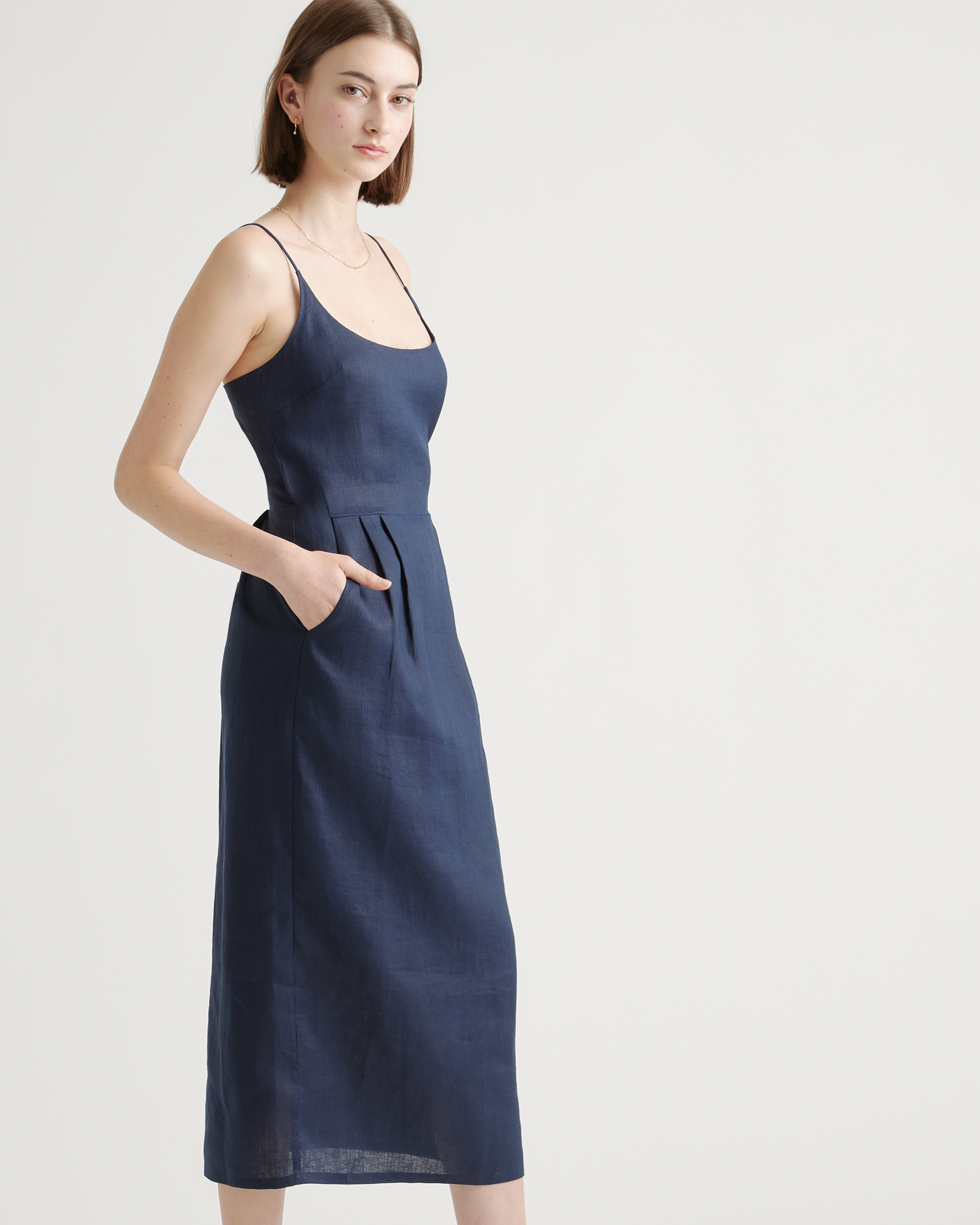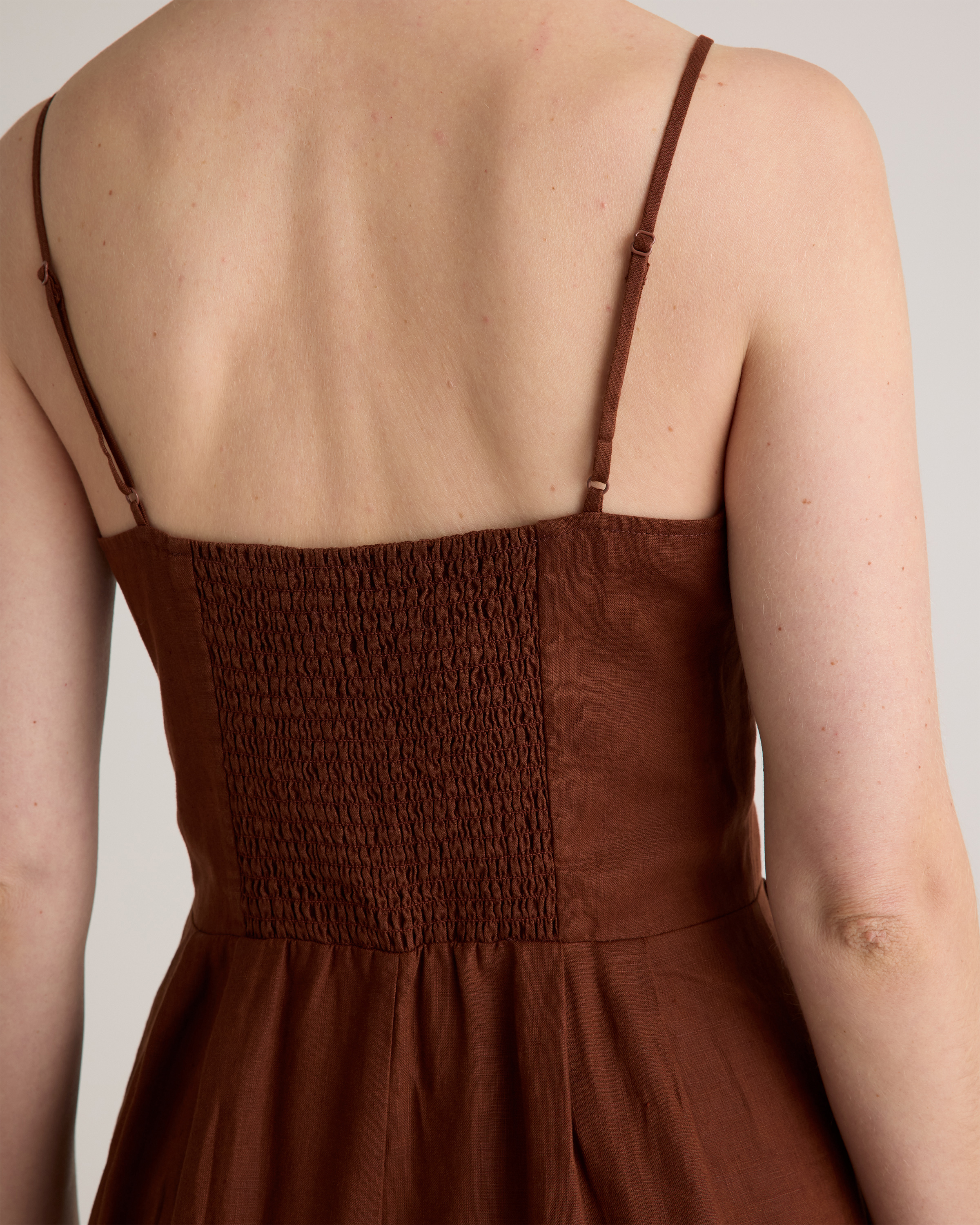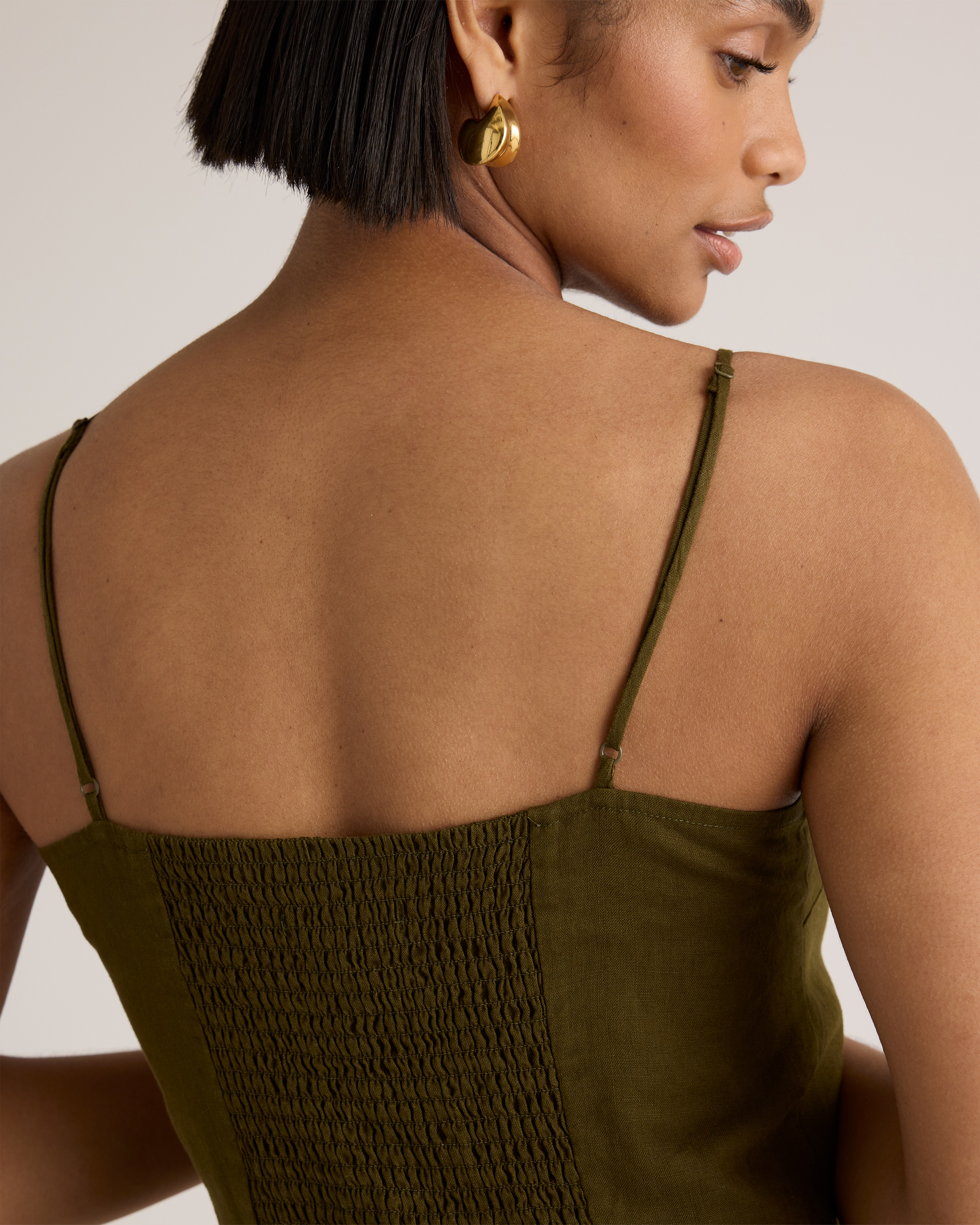 Model is 5'9" and wearing size small in deep navy, khaki / black gingham, blue pinstripe, soft yellow, chocolate, classic mini gingham, floral waterfall, and mauve mist